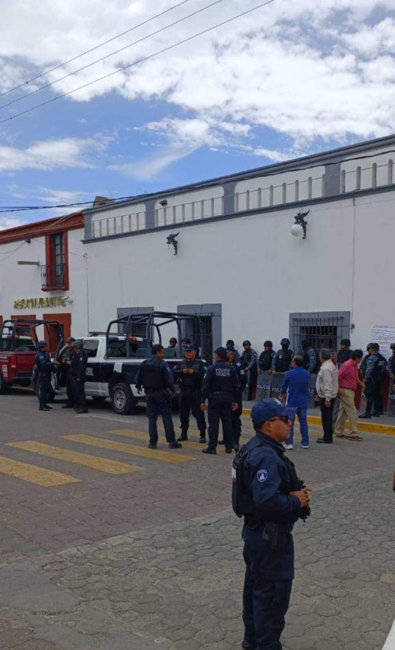 Por el caos, arribaron al lugar elementos de la Policía Estatal con 120 elementos, así como una comisión de la Secretaría de Gobernación de Puebla para entablar un dialogo, sin embargo, la situación se salió de control por lo que los manifestantes dañaron tres unidades de Seguridad Pública y se tuvo que asegurar el Palacio Municipal.