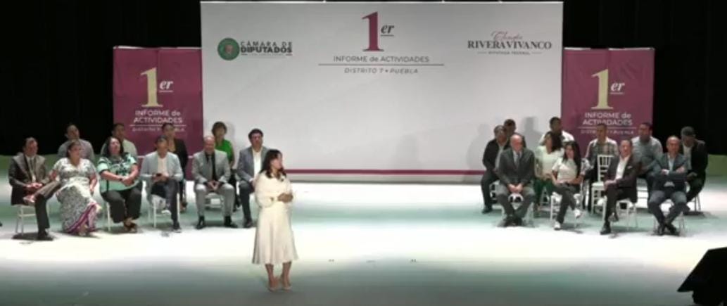 Tepeaca, Pue.- La diputada por el VII distrito federal, Claudia Rivera Vivanco, rindió su informe de labores legislativas en el Auditorio Miguel Negrete de Tepeaca.