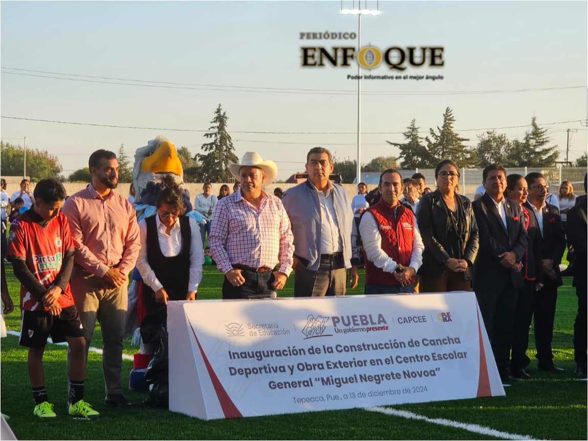 Finalmente, la directora general del Centro Escolar de Tepeaca, Nancy Esmeralda Martínez López a agradeció al titular del poder ejecutivo en Puebla, Sergio Salomón por ser un gobierno presente y todas las obras realizadas en su institución, reconoció y aplaudió el aporte del gobernador para Puebla que, sin duda, quedará escrito en la historia, por lo que le deseo lo mejor y muchos éxitos en su nueva encomienda dentro del equipo de la Presidenta de Mexico, Claudia Sheinbaum Pardo, pues: “personas como usted hacen falta para cambiar la vida de un pais”, concluyó.