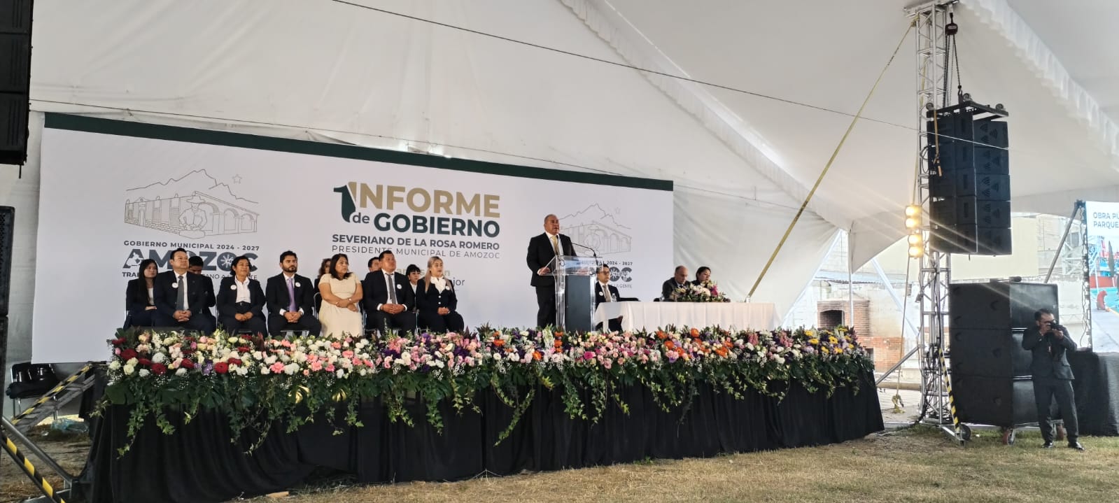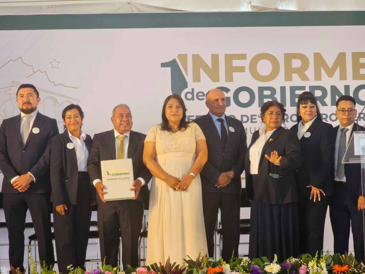 Amozoc, Pue.- El presidente municipal de Amozoc, José Severiano de la Rosa Romero, rindió su Primer Informe de Gobierno, acompañado por su equipo de trabajo y por Víctor Gabriel Chedraui, titular de la Secretaría de Desarrollo Económico y Trabajo, quien acudió en representación del gobernador Alejandro Armenta.