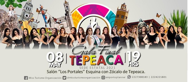 El día 8 de mayo se realizará la gala final de Miss Turismo Puebla, la concentración inicia el 6 de mayo y concluye el 9 del mismo mes.