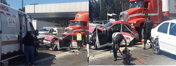 Según testigos, el conductor del tráiler de cabina roja y caja blanca se quedó sin frenos al llegar a la caseta de cobro y golpeó a cuatro vehículos, entre ellos un taxi de la ciudad de México, donde lamentablemente una mujer perdió la vida, además seis personas resultaron heridas, entre ellas una menor de edad, las cuales fueron trasladadas a un nosocomio de la ciudad.