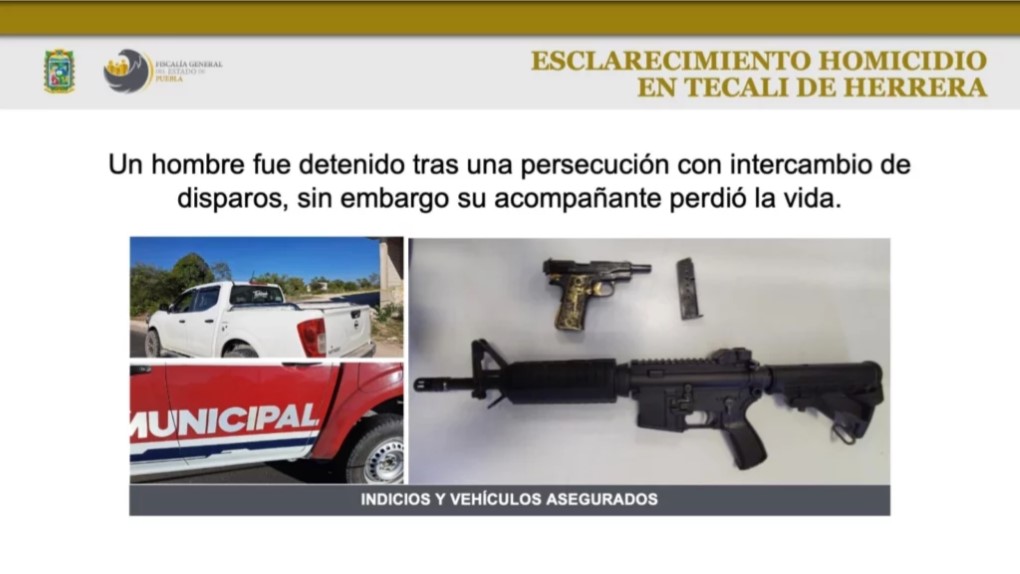 Tecali de Herrera, Pue.- Hay una mujer policía detenida por el homicidio ocurrido la madrugada del pasado 16 de julio en el municipio de Tecali de Herrera, cuando un civil perdió la vida.