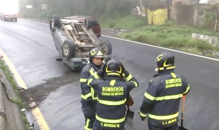 ¿Qué causó la volcadura de los carros en la México-Toluca?