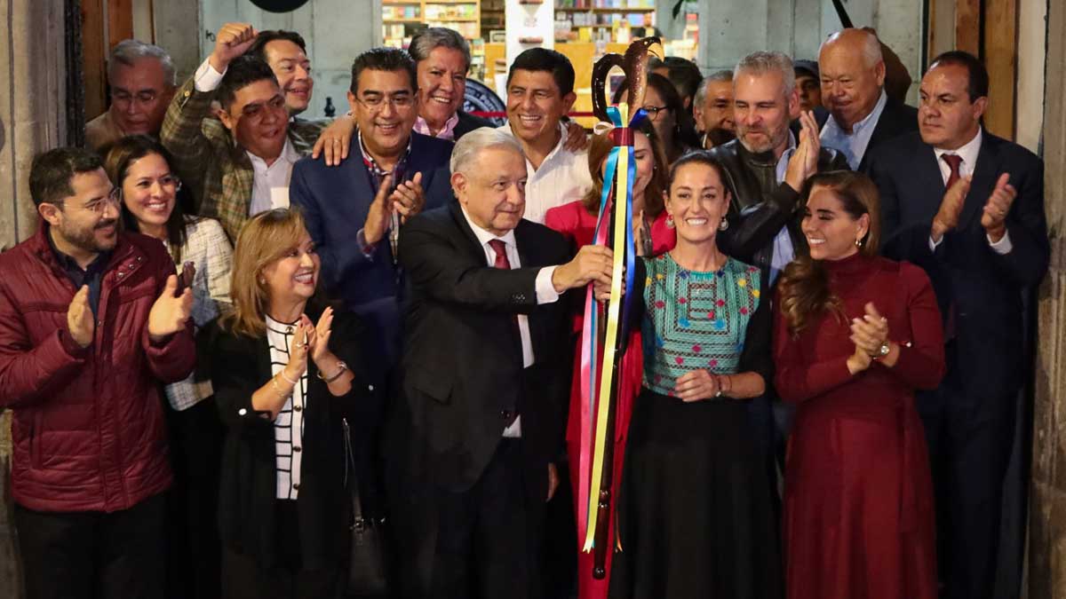 Ciudad de México.- La noche de este jueves Claudia Sheinbaum recibió de manos del presidente Andrés Manuel López Obrador, el bastón de mando como dirigente del movimiento transformador, luego de ser nombrada como Coordinadora Nacional de la Defensa de la Cuarta Transformación.