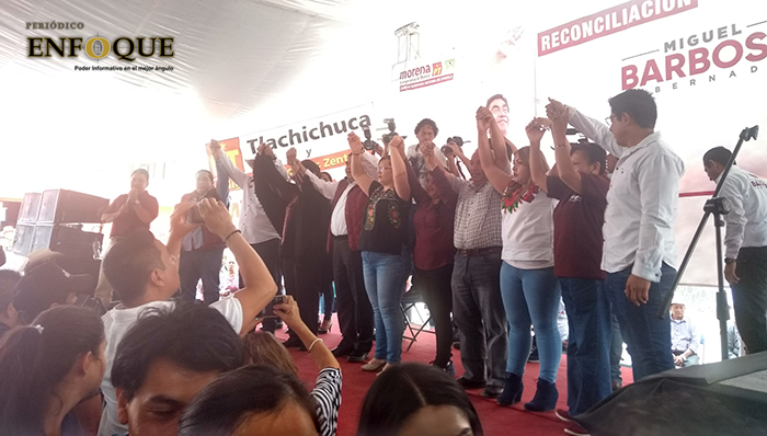 Tlachichuca, Pue. En este municipio de la región de Ciudad Serdán, el candidato de la alianza "Juntos haremos historia" en Puebla, Miguel Barbosa Huerta se comprometió que de los 90 mil millones de pesos de presupuesto para la entidad, de ganar hará que cada peso valga un peso más.
