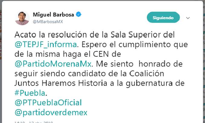 Foto: Wilmer Zárate TEPJF mantiene candidatura de Barbosa Huerta, campaña sigue firme: voceros de campaña