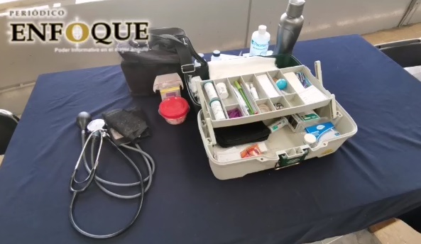 Dentro del botiquín que tiene la supuesta enfermera se encuentra un estetoscopio, algodón, algunas pastillas para gripe común, 3 frascos pequeños de alcohol y el termómetro que generalmente se utiliza en casas.
