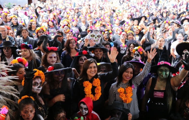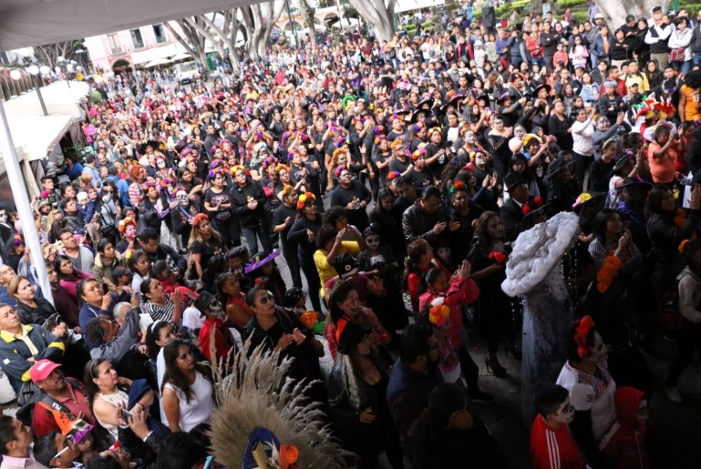 Este fin de semana participamos en la activación física organizada por @DeportePue. Cientos de catrinas y calaveras se dieron cita en el zócalo de la ciudad para bailar, convivir en familia y a la vez disfrutar de esta #TradicionQueNosUne. ?? pic.twitter.com/GmgwHu5bKe