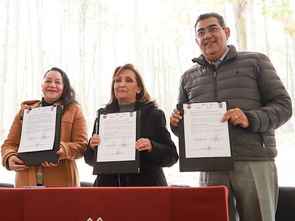 HUAMANTLA, Tlax. - El gobierno de Puebla mantiene firme el compromiso de brindar un mejor futuro a las siguientes generaciones, es por ello que promueve iniciativas para proteger al medio ambiente, manifestó el gobernador Sergio Salomón al presidir, en conjunto con su homóloga de Tlaxcala, Lorena Cuéllar Cisneros y la secretaria de Medio Ambiente y Recursos Naturales (SEMARNAT), María Luisa Albores González, la firma de convenio para erradicar y prevenir la tala ilegal y delitos relacionados en el parque nacional “La montaña Malinche o Matlalcuéyatl”.