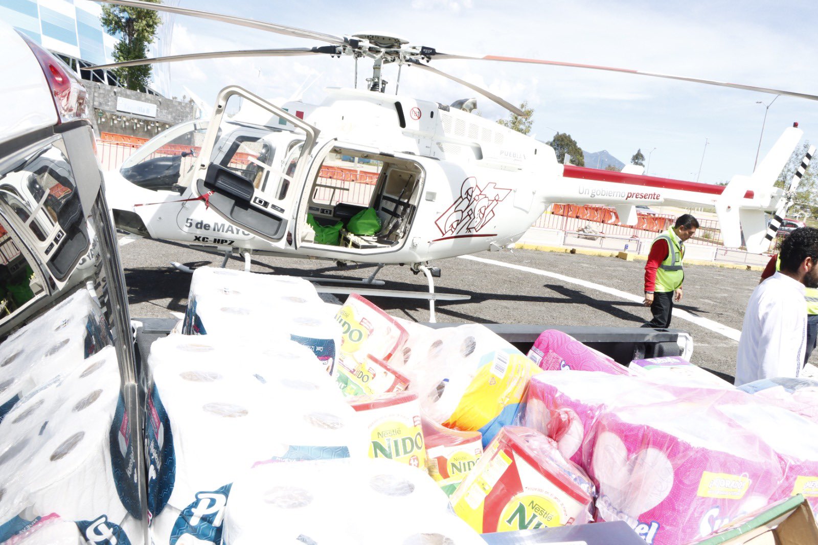 El gobernador del Estado Puebla, Sergio Salomón Céspedes, dio a conocer la salida del primer helicóptero con víveres hacia el estado de Guerrero, zona afectada por el paso del huracán 'Otis'.