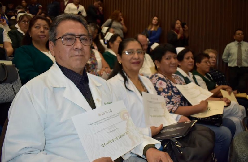 El delegado estatal, José de Jesús González Izquierdo, detalló que más de 450 médicos, enfermeras, asistentes médicas, administrativos, operadores, técnicos, trabajadoras sociales y nutriólogas, fueron condecorados para resaltar la labor que realizan día con día.