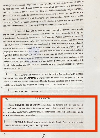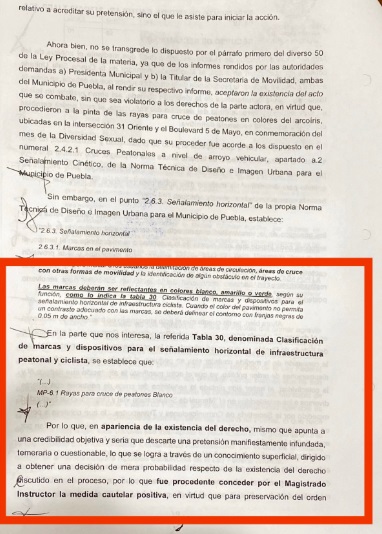 Cabe señalar que Rivera Vivanco confiaba que el Tribunal le daría la razón, ya que recordó que la norma técnica de imagen urbana de Puebla capital refiere que se pueden usar colores contrastantes en los pasos peatonales.